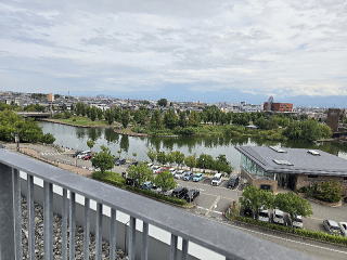 富岩公園環水公園の西側にあり、3階建ての立派な建物である。コレクションには興味なかったので屋上に上がる。庭園になっていて、見晴らしは南南東に富山駅周辺のビル街、南東奥には雲でうっすらと立山連峰が見えていた。