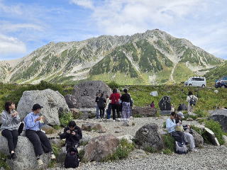 ホテル(8:20出発)=立山駅「475」(10:10、10:40) =美女平「977」(10:50、10:55)=室堂平「2450」(11:55、13:40出発)=大観峰「2316」(13:50、14:15)=黒部平「1828」(14:25、14:40)=黒部湖「1455」(14:55) →黒部ダム「1470」(15:40)=扇沢「1433」(15:55、16:25) =白馬栂池小谷地区