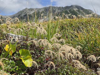 いつ来ても凄い展望だ。カメラのシャッターポイントを探す。立山全景、一の越方面、別山乗越方面、ミクリガ池周辺、大日岳方面、富山湾方面とシャッターを押しまくる。50コマ近く押したような気がする。高山植物はほとんど終わっている。チングルマ、イワウチワの姿が目立つ。アキノキリンソウが残っていた。目的とするところはほとんどカメラに納めたので次の大観峰に向かう。