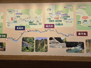 宇奈月「224」―猫又「358」間往復2時間のトロッコ列車旅である。