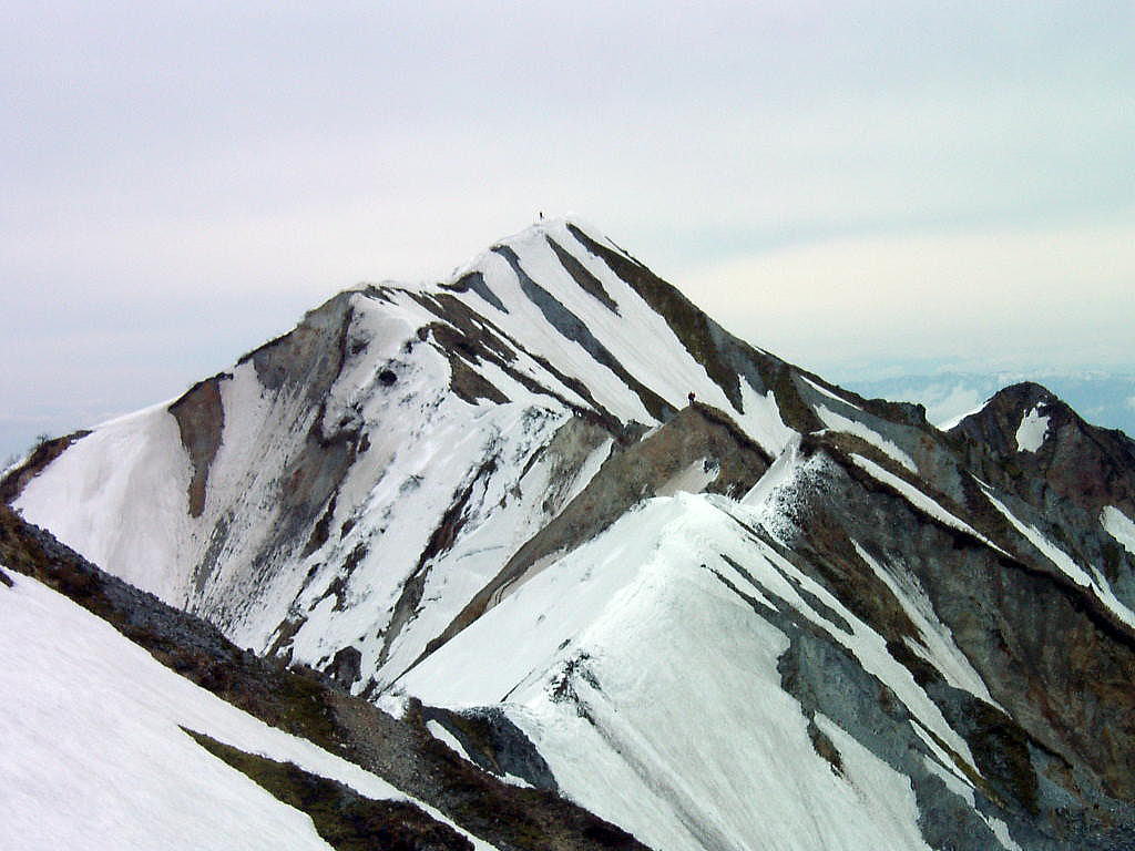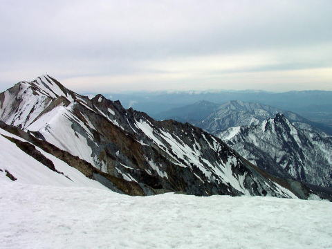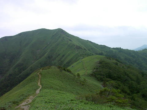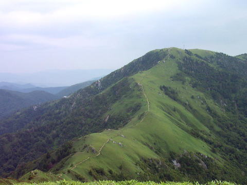 2)剣山 次郎笈から見た剣山(2005.7.30 9:40) 剣山から見た次郎笈(2005.7.30 8:50)