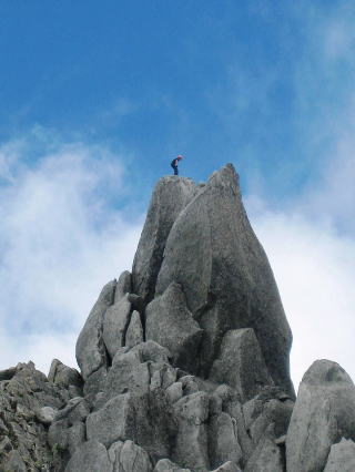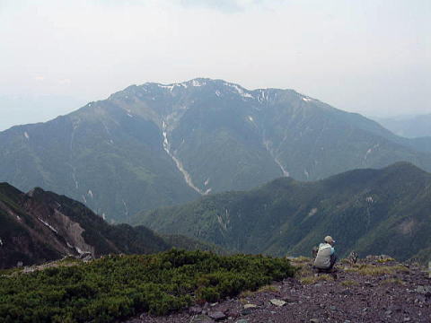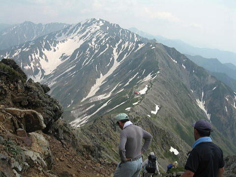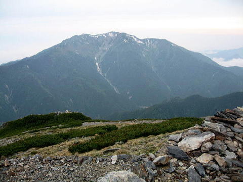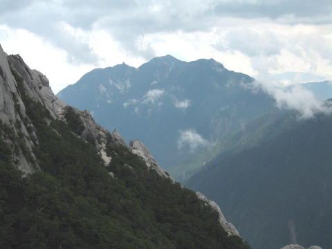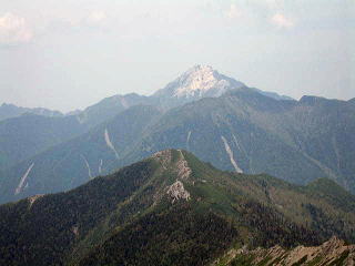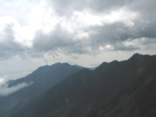 4)悪沢岳にて 静岡よりしずてつジャストラインのバスで畑薙第1ダムまで入り、東海フォレストの送迎バスで椹島に入る。ロッ 5)聖岳登山にて 入り、きわどい道を1時間ほど走る。易老渡を過ぎ、登山口である便ケ島に到着。西沢渡から尾根道に入り、薊畑分岐 に出て聖平小屋に入る。翌朝小聖岳経由聖岳を登る。 ![]() 南岳から見た聖岳(2006.8.12) 下の写真は2007.8.11西沢渡から尾根伝いに登り、尾根の薊畑分岐から撮ったものである。 薊畑より(2007.8.11) |