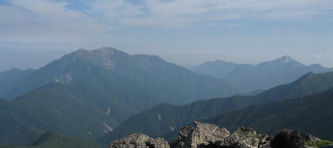 | 南アルプスには10座あり、5回に分けて登ったが、どの山も総て記憶に残る山ばかりであった。2006.8.4−8.7に登った塩見岳−間ノ岳−北岳のコースは良かった。少しきつかったが天候に恵まれ、塩見岳山頂から見た北アルプスの槍ケ岳と南アルプスの北方面の山容は今でも脳裏に残る。また、南アルプスの山々を見ながら稜線歩きをしたこと、タカネビランジ、タカネコウリンカ、ハハコヨモギ、ミヤママンネングサ等南アルプス特有の数々の高山植物を見ながら縦走することが出来た。2006.8.11-8.14山岳会で行った甲斐駒ケ岳、仙丈ケ岳も記憶に残る。甲斐駒ケ岳に登る途中鳳凰三山の上に浮かぶ富士山、小仙丈ケ岳から見た仙丈ケ岳の山容も素晴らしかった。2006.9.16-9.18青木鉱泉からドンドンコ沢経由で鳳凰三山を登った。2007.8.10-8.14聖岳光岳は距離が長かったが記憶も多い。2008.7.25-7.29悪沢岳−赤石岳も天気に恵まれた。ピンクと白色のタカネビランジ、始めて見たミヤマムラサキとシコタンソウが咲いていた。また、丸山、悪沢岳から見た南アルプスの北方面、南方面の山々の姿は素晴らしく、記憶に残る。早朝に聖岳から見た槍ガ岳、富士山は綺麗で素晴らしかった。また、悪沢岳・赤石岳登山時、早朝山小屋から見た朝日を浴びる富士山は格別であった。また茶臼小屋から見た夕日に焼ける赤富士も記憶に残る。雨の中3:30出発した光岳はよく歩いたなあ。それから2009.6.27.28キタダケソウの写真撮りに北岳を再度登った。この時天気が良く、周りの山容に恵まれた。 ![]() 仙丈岳、甲斐駒、北岳、間ノ岳、西農鳥岳(塩見岳より) 南アルプスでは多くの山容が記憶に残っている。印象に残っている写真を下記に記載する。