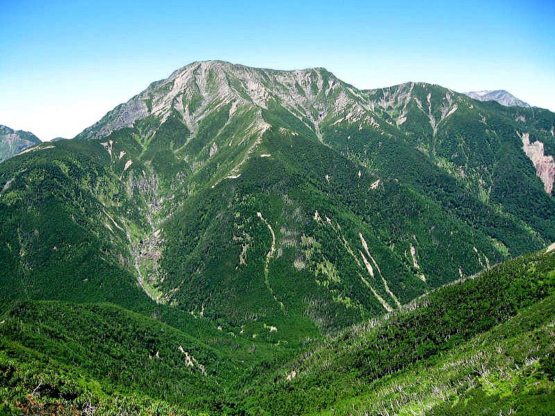 2)鳳凰山 次の鳳凰山の写真は甲斐駒ケ岳に登る途中撮ったものである。 下記の写真は鳳凰山花紀行の時に撮った写真です。 3)北岳・間ノ岳・塩見岳