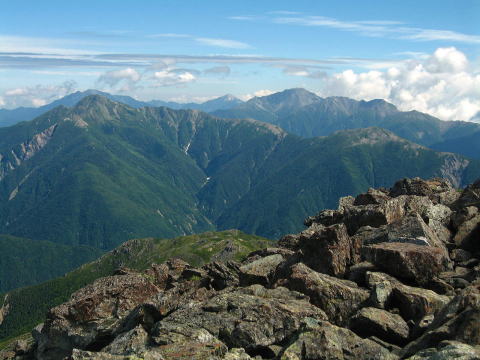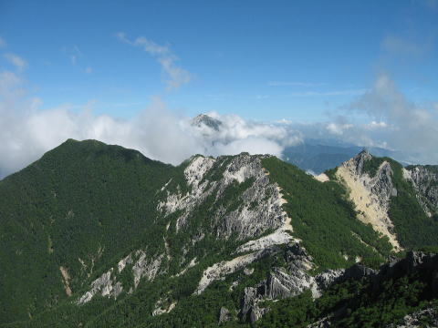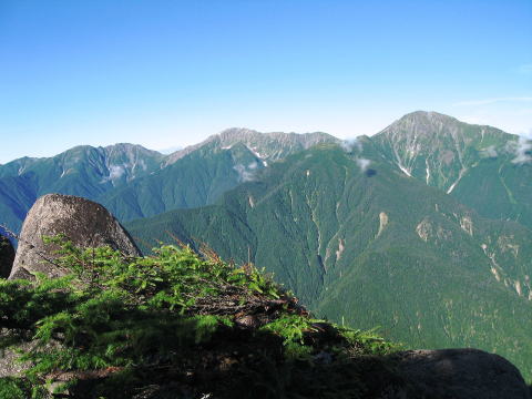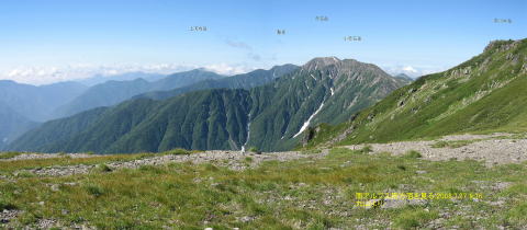 次の写真は2006.8.13北沢長衛小屋より北沢峠から登り、途中の小仙丈ケ岳から撮ったものである。